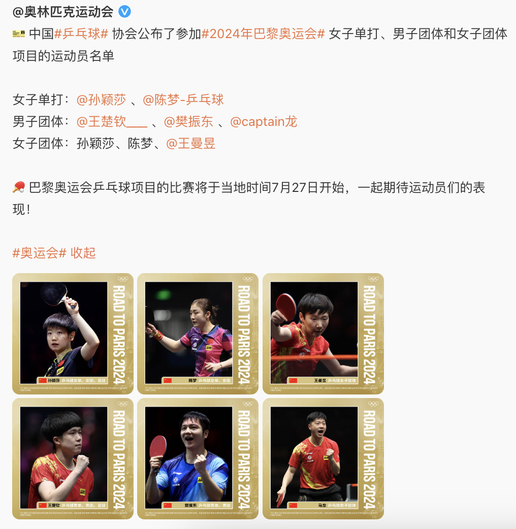 I remember it all too well 五月写下last dance的时候已经预想到了巴黎可能是我的最后一届奥运会,必将全力以赴为国而战。圆满完成奥运任务后,由于巴黎周期遗留了巨大心理消耗,除了下届全运会确定参加,我对未来职业生涯尚未展开具体规划。近日WTT颁布了不参赛就罚款的新规,个人实在无力承受但依然尊重国际组织,所以目前只能选择退出世界排名。按照国际乒联和中国乒协的要求,本周已提交报告。